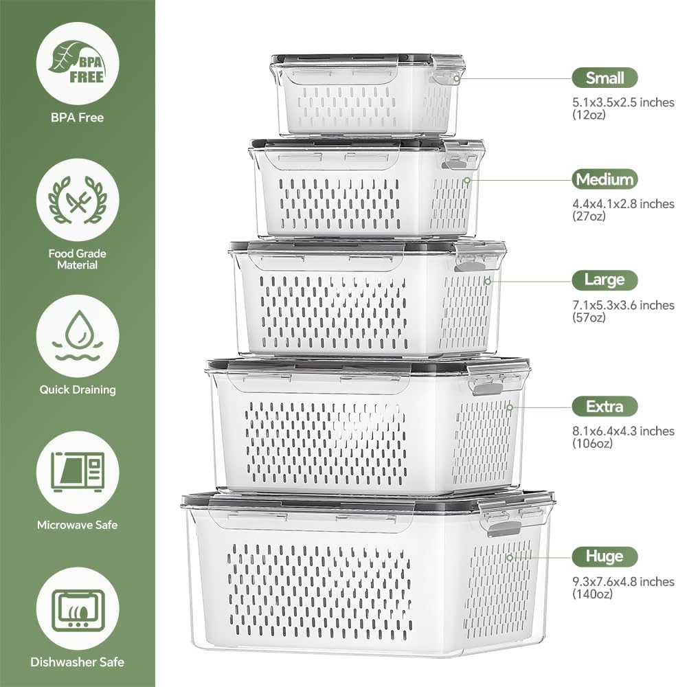 - 5 PCS Large Fruit Storage Containers for Fridge, Airtight Food Storage Containers with Removable Colander is for $10.99 (Reg $21.99) at Amazon.com