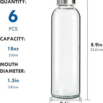 Amazon: $11.49 ($22.99) 6Pk Glass Water Bottles 18oz Bottles For Beverage and Juicer
