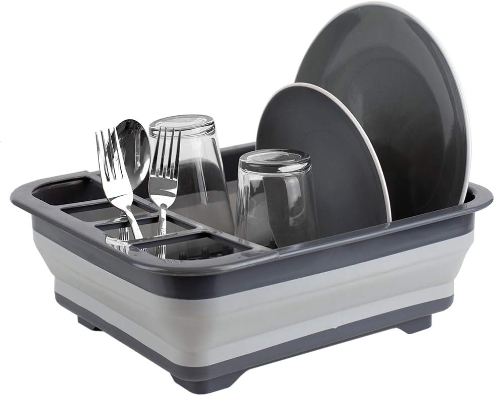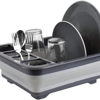 Amazon: $12.00 ($17.07) Silicone and Plastic Easy Storage Collapsible Dish Rack with Cutlery Holder (Grey)