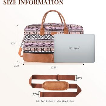 Amazon : $12.29 ($48.98)  Oflamn Weekender Travel Bag for Women – Bohemian Style Duffle Carry-On Luggage with Separate Shoe Compartment – Ideal for 1-3 Days and Overnight Travel