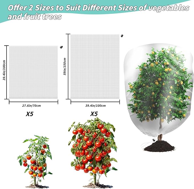 Amazon :$12.99 ($22.99)10Pcs Garden Netting Bags with Drawstring Plant Mesh Cover, 2 Size Netting Cover Garden Plant Barrier Netting Protection Bags for Tomato Vegetables Flower Tree Fruit, 2.30 x 3.3ft+3.3X 4.92ft