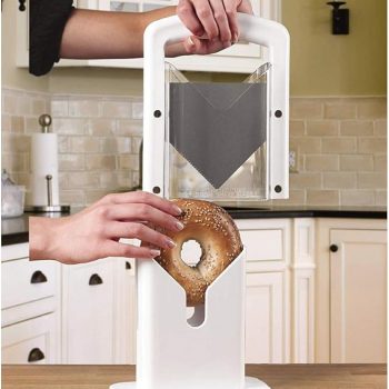Amazon : $12.99 ($23.99) Hoan The Original Bagel Guillotine Slicer, Manual Precision Cutter with Safety Shield, Cleanly Slices Bagels and More, White, 9.25 Inch Kitchen Tool