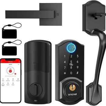 Amazon : $129.99 ($234.99) Smart Lock Front Door, SMONET Keyless Entry Door Lock with Handle, Smart Front Set Fingerprint Deadbolt Bluetooth Electronic Digital Keypad, Auto Work with Alexa, Black