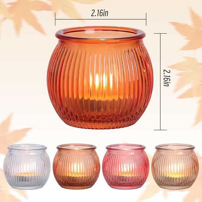 Amazon : $13.49 ($26.99) 20pcs Pumpkin Votive Candle Holders with 20pcs Tea Light Candles, 5 Colors Tealight Candle Holders for Fall Table Decorations, Glass Candle Holder for Thanksgiving, Home, Party Decoration