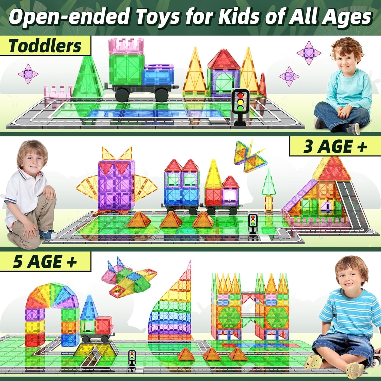 Amazon: $13.49 ($35.99) Magnetic Tiles Road Sets with Car Kits -Magnet Building Blocks Montessori Toys for Toddlers