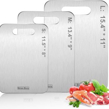 Amazon : $13.98 ($18.99)  Stron- Dura Cutting Board – 304 Food Grade Stainless Steel Cutting Boards for Kitchen- for cutting Meat, Fruit, Vegetables, Outdoor or Indoor 11.5″ X 8″ (1, Small)