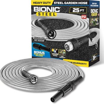 Amazon: $13.98 ($29.95) 25 Ft Short Metal Garden Hose with Nozzle