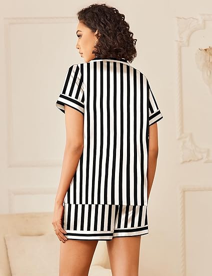 - Ekouaer Womens Silk Satin Pajamas Sets 2 Piece Short Sleeve Sleepwear Button Down Top and Shorts Pjs Lounge Wear Sets S-XXL : $13.99 ( at Amazon.com