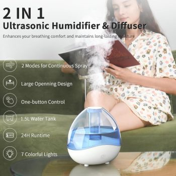 Amazon: $13.99 ($39.99) 1.5L Ultrasonic Cool Mist Humidifier, Quiet Air Humidifiers for Bedroom