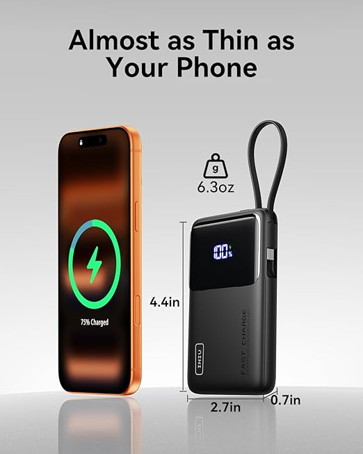 Amazon : $14.27 ($29.99)  INIU 45W Power Bank, Slimmest 10000mAh Portable Charger with Built in USB-C Cable, Fast Charging USB C in&Out Battery Pack, Travel External Phone Charger for iPhone 17 16 15 Samsung S24 S23 Google etc