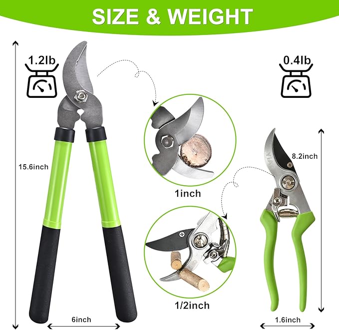 Amazon : $14.39 ($23.99)  Loppers for Tree Trimmer 15” Branch Cutter and Garden Shears Set Bypass Pruning Shears,Rust-Resistant Clipper,1.5” Diameter Cut Capacity,Shock-Absorbing Handle,Gardening Pruners for Yard,Plant,Hedg
