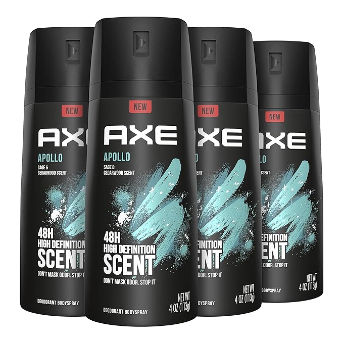 Amazon : $14.70 ($18.99)   AXE Apollo Body Spray Deodorant for Long-Lasting Odor Protection, Sage & Cedarwood Deodorant for Men Formulated Without Aluminum 4 Ounce (Pack of 4)