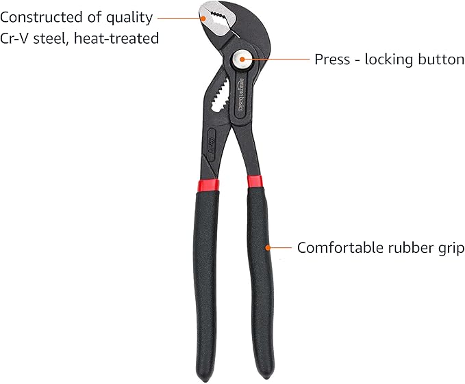 Amazon : $14.83 ($18.88)  Amazon Basics 3-Piece Quick Release Groove Joint Pliers Set, Drop Forged Chrome Vanadium Steel, Includes 7-inch,10-inch, and 12-inch, Black