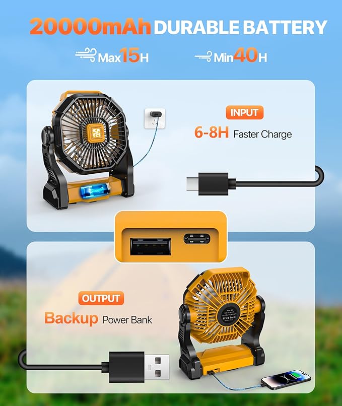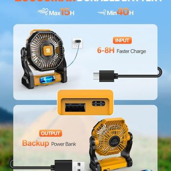 Amazon: $14.99 ($29.99) Camping Fan Battery Powered -20000mAh Portable Rechargeable Fans