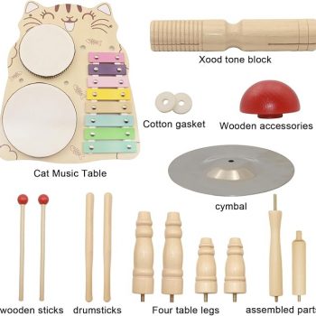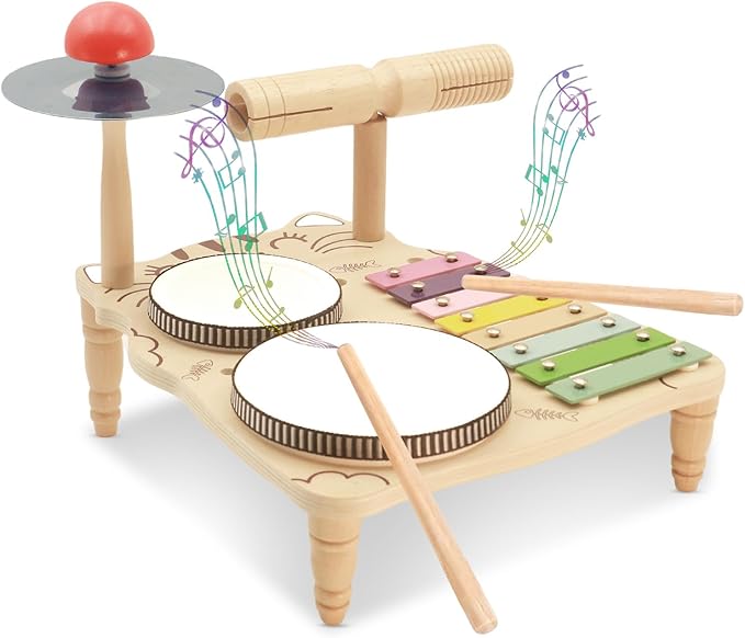 Amazon: $14.99 ($29.99) Kids Drum Set, 9 in 1 Wooden Musical Instruments for Toddlers