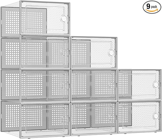 Amazon : $14.99 ($37.99) Kuject X-Large Shoe Storage Boxes Organizers Clear Plastic Stackable 9 Pack, Shoe Rack & Holder Substitute, Sneaker Containers, Toy Storage Organizer Bins for Entryway, Closet, Under Bed, Grey