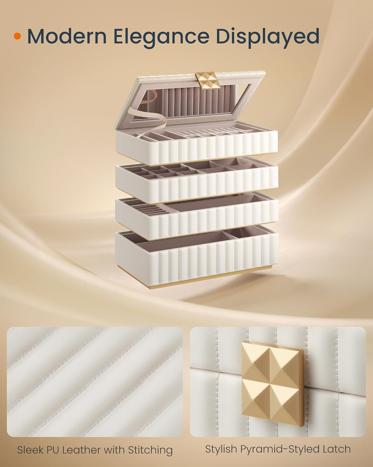 Amazon: $14.99 ($49.99) Branded Stackable Jewelry Box with Mirror, 4-Tier Jewelry Storage Organizer, PU Surface