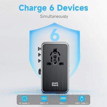 Amazon : $15.49 ($32.99) Minthouz Universal Travel Adapter, International 70W Power Adapter GaN Fast Charger with 3 USB-C PD, 1 USB-C Cable & A Ports, All-in-One Portable AC Power Plug Adapter for USA EU UK AUS