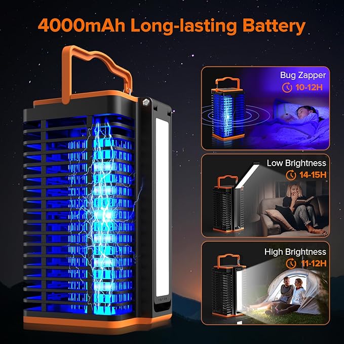 Amazon :$16.79 ($79.99)Solar Bug Zapper Outdoor,2 in 1 Mosquito Zapper Cordless & Rechargeable, 4200V Portable Fly Zapper Insect Trap with Reading Lamp for Camping Patio Backyard Garden