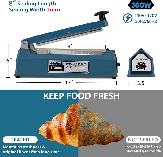 - ROMECH 8 Inch Impulse Bag Sealer, Solid Metal Housing Heavy Duty Manual Heat Sealer Machine is for $17.49 (Reg $34.99) at Amazon.com