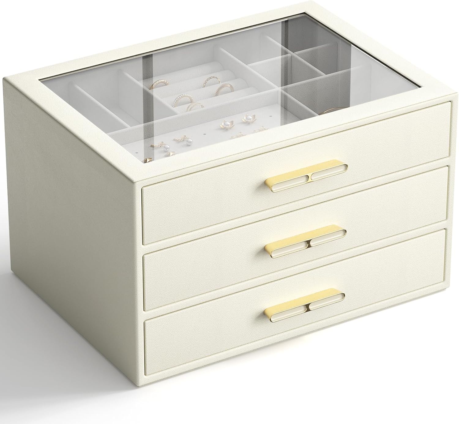 Amazon: $17.99 ($35.99) Jewelry Box with Glass Lid, 3-Layer Jewelry Organizer, 3 Drawers, for Big and Small Jewelry