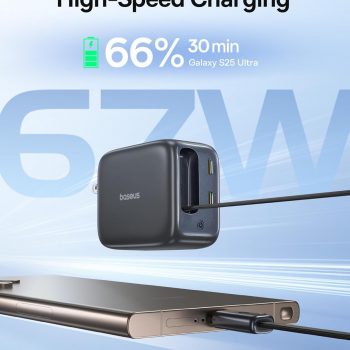 Amazon : $19.79 ($39.98)  Baseus Retractable USB C Charger, 67W 3 in 1 Fast Charging Block with Foldable Plug, Enercore CJ11 PD/PPS for Galaxy S25/iPhone 17/16/15 Series/MacBook Air/Airpods 4