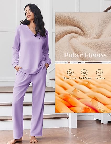 - Ekouaer Pajama for Womens Set Ploar Fleece Long Sleeve Lounge Sets Fall Pjs V Neck Comfy Sleepwear with Pockets : $19.99 ( at Amazon.com
