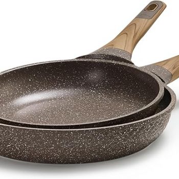 Amazon : $19.99 ($42.99) CAROTE Non Stick Frying Pan Skillet Set, Omelet Pan, Healthy Non Toxic Granite Chef Pan, Induction Compatible Egg Frying Pan with Heat-Resistant Handle, PFOA-Free,Brown,9.5