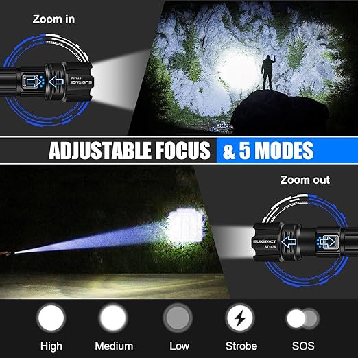 Amazon : $22.79 ($39.99)  Flashlights High Lumens, Rechargeable Flashlight Led 950000 Lumen XHP70.2, Super Bright Flash Light, High Powered Handheld Flashlights for Emergency Camping Gift, IP67 Waterproof, Adjustable