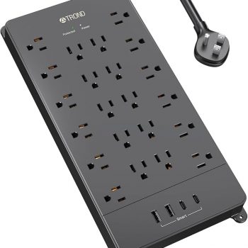 Amazon : $23.08 ($39.99) TROND Surge Protector Power Strip with USB C Ports, 5ft Extension Cord with Multiple Outlets, 22 AC Outlets and 4 USB Ports, 4000J, Flat Plug, Heavy Duty, Wall Mount, Under Desk, ETL Listed, Black