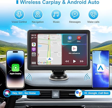 Amazon : $23.99 ($39.99)  Wireless Carplay Screen for Car, 7” HD Touch Screen Portable Car Stereo for Carplay & Android Auto, Pantalla para Carros with Bluetooth, AUX, FM Transmitter, Voice Control