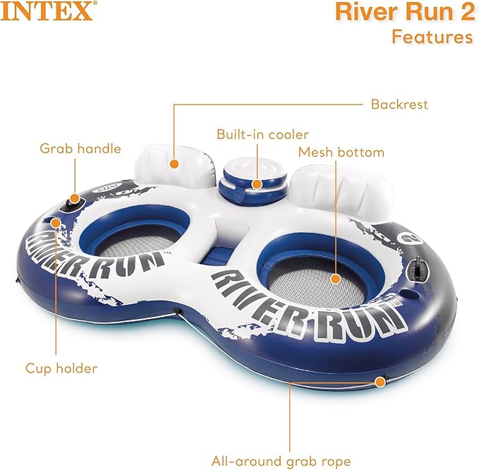 Amazon : $23.99 ($44.97)  Intex 58837EP River Run 2 Inflatable Floating Lounge: Comfortable Backrests – Built-in Cup Holders – Cooler with Lid – 2 Person – 440lb Weight Capacity