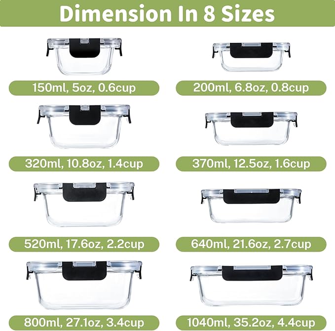 Amazon: $23.99 ($48.99) 8 Pack Borosilicate Glass Food Storage Containers w/ Lids