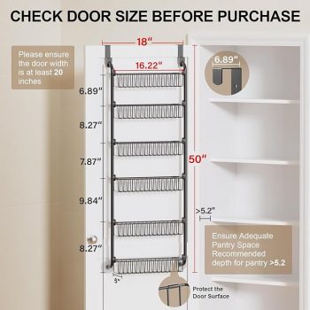 Amazon : $24.98 ($32.99) Delamu Over the Door Pantry Organizer, 6-Tier Metal Pantry Door Organization and Storage, Hanging Kitchen Basket Spice Rack Seasoning Shelves, Cabinet Door Organizer for Easy Install,D5xW18xH50inch