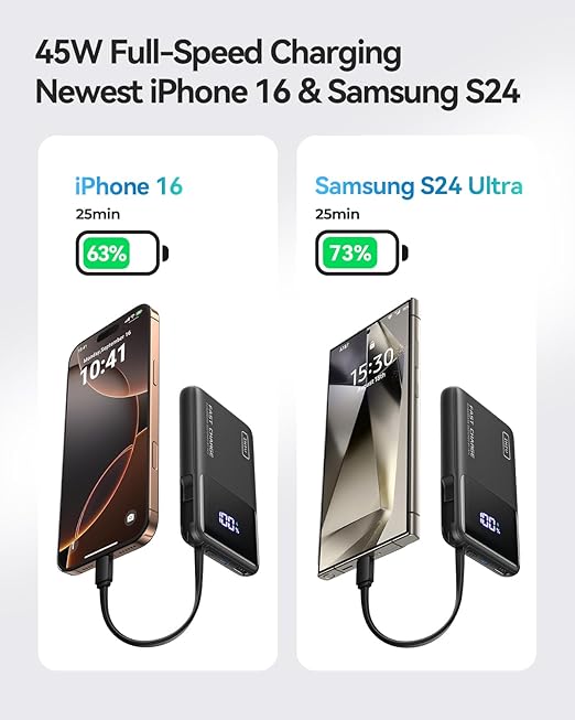Amazon : $24.99 ($29.99) INIU 45W Power Bank, Slimmest 10000mAh Portable Charger with Build in USB-C Cable, Fast Charging USB C in&Out Battery Pack, Travel External Phone Charger for iPhone 17 16 15 Samsung S24 S23 Google etc