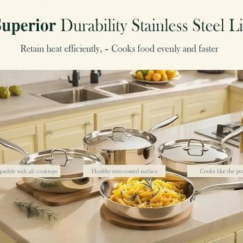 - 12 Inch Tri-Ply Stainless Steel Frying Pan, Frying Pan with Lid, is for $25.98 ($39.99) at Amazon.com