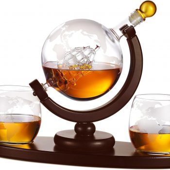 Amazon: $26.21 ($58.89) Whiskey Decanter Globe Set w/ 2 Etched Whiskey Glasses – for Liquor Scotch Bourbon Vodka
