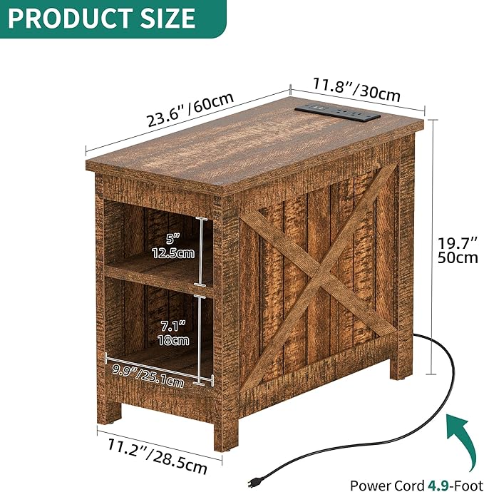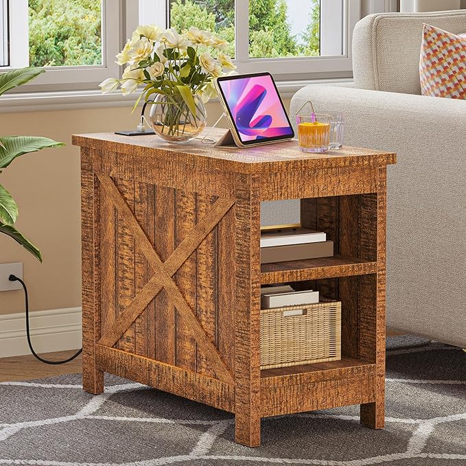 Amazon : $26.91 ($69.00)  YITAHOME End Table with Charging Station, Farmhouse Narrow Side Table with Storage Shelf, Nightstand with Storage for Small Spaces, Living Room, Bedroom, Brown