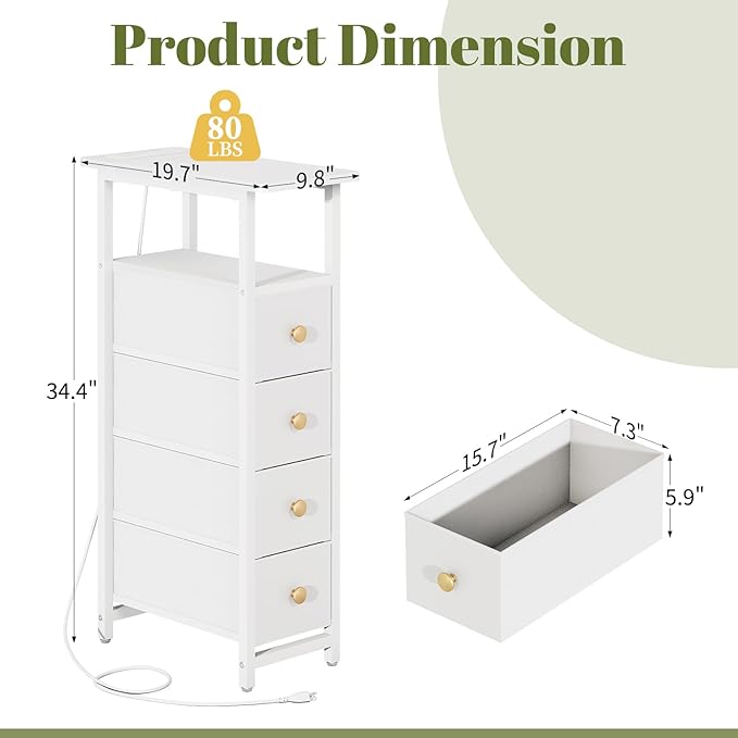 Amazon: $27.68 ($52.99) LED Narrow Nightstand with Charging Station Slim Dresser