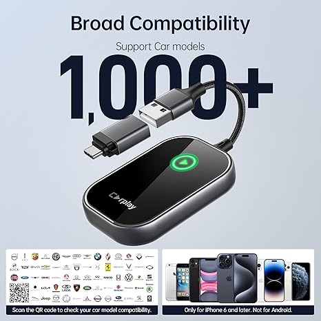 Amazon : $27.95 ($299.99)  (2023 Upgrade) Wireless CarPlay Adapter for Apple iPhone, Converts Factory Wired to Wireless CarPlay Dongle Plug & Play Auto Connect Zero Latency for Cars from 2015 and iOS 10+ Dark Black