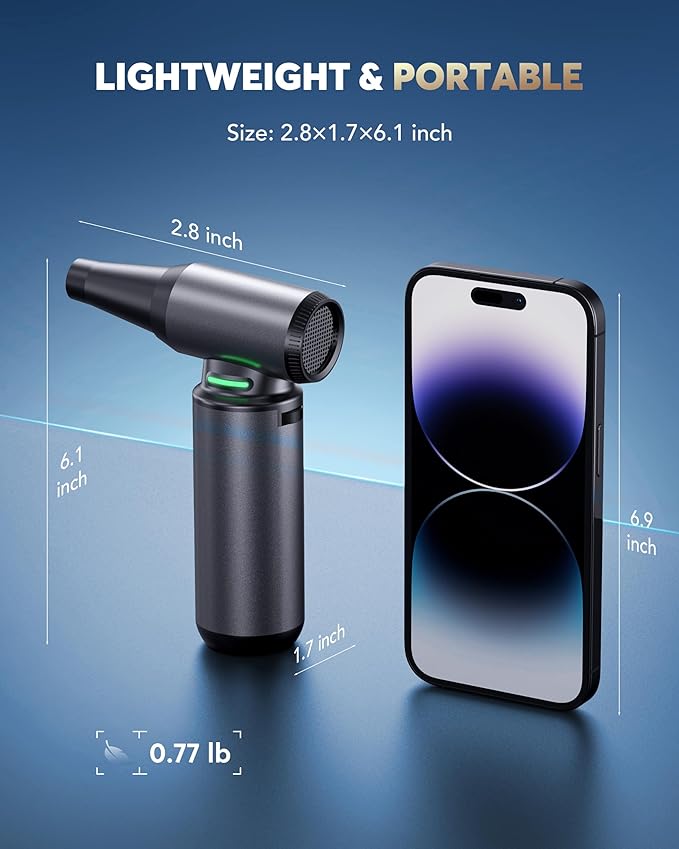 Amazon : $27.99 ($129.99)  Compressed Air Duster, 180000RPM 7500Mah Electric Air Duster with Brushless Motor, 12-Gear Mini Blower, Replace Canned Air, Jet Dry Blower for Computer, Keyboard, Car, Home, Outdoor Cleaning