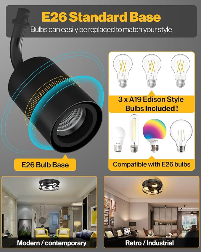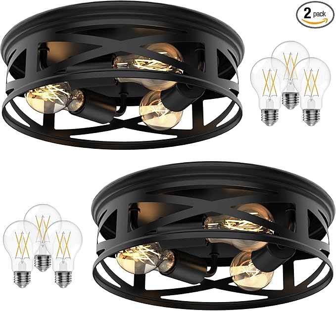 Amazon: $27.99 ($64.99) 2-Pack Sunco Farmhouse 3-Light Flush Mount Ceiling Light Fixture