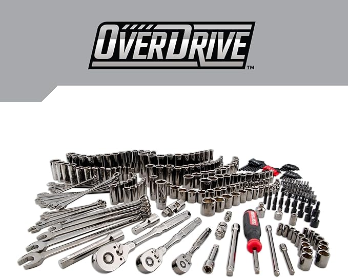 Amazon : $279.00 ($379.99)  CRAFTSMAN OVERDRIVE 284-Piece Gunmetal Chrome Mechanics Tool Set, Standard SAE/Metric Socket Set, with Hard Case (CMMT99284)