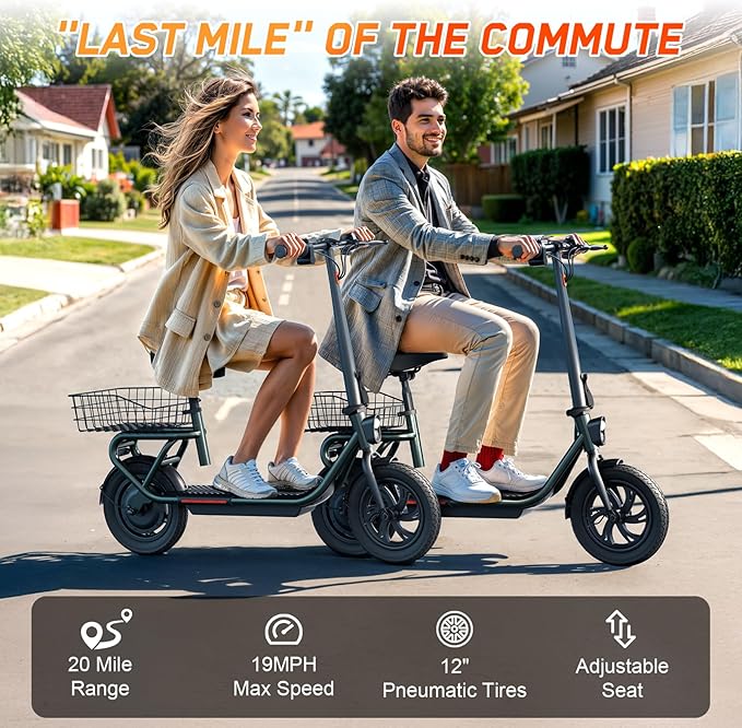 Amazon :$279.99 ($559.99)TST Electric Scooter with Seat, Peak 650W Motor 19MPH & 20 Miles Range,12
