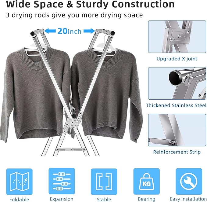 Amazon: $29.99 ($49.99) Drying Rack Clothing, 79 Inches Adjustble & Foldable Laundry Drying Rack