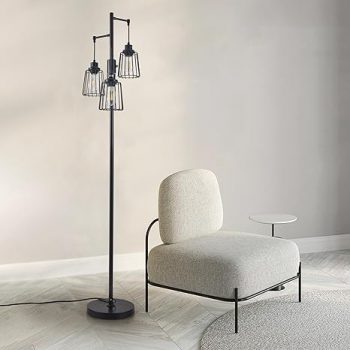 Amazon : $29.99 ($59.99)  Dimmable Floor Lamp, Farmhouse Industrial Floor Lamp for Living Room, Standing Tree Floor Lamp with 3 Elegant Teardrop Cage Head, Bright Floor Lamp for Bedroom Office(Black)