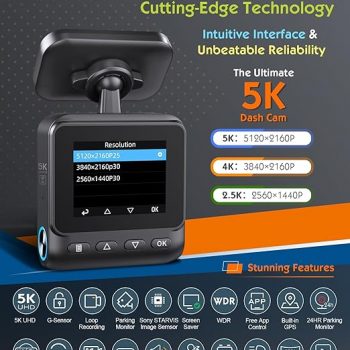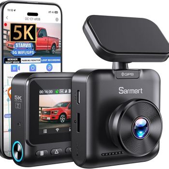Amazon : $29.99 ($72.79)  Sarmert C1 5K Dash Cam Front – Built-in GPS and 5G WiFi, Sony STARVIS Sensor, HDR Night Vision Car Camera, 5K/4K/2.5K UHD Dash Camera for Cars, Loop Recording, WDR, G-Sensor, 24H Parking Mode