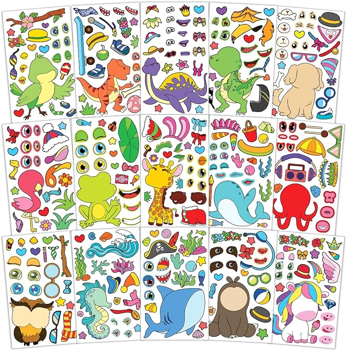 Amazon : $3.50 ($6.99) 15 Sheets Make Your Own Animal Stickers for Kids Girls Boys Toddlers Create A Face Decal Large Print Pack Custom Waterproof Decals Party Favors Set Craft Sticker Books Supplies