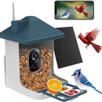 Amazon :$31.99 ($105.99)Smart Bird Feeder with Camera,AI Identify Species,Bird House with Solar Powered,Instant Arrival Alerts,2K HD Capture Video Live View,Gift for Birds Lover (Indigo Blue)