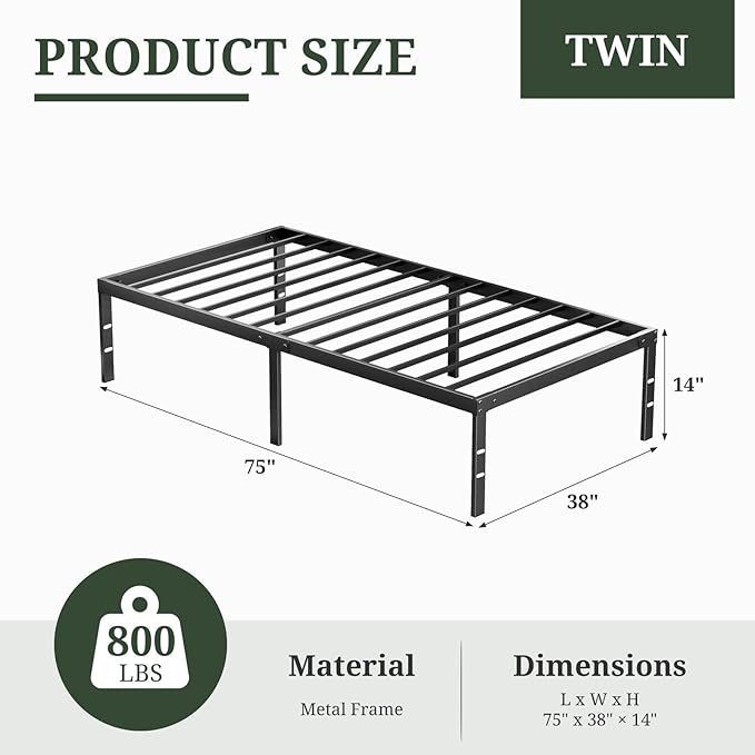 - Twin Size Bed Frame, 14 Inch Metal Platform Bed Frames, is for $32.39 ($44.99) at Amazon.com